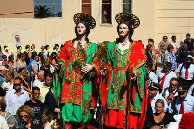 Lasciata la "marina", la lunghissima processione dei Santi Medici percorre un tratto della via "di mezzo" e quindi il Pendio Lariccia per raggiungere la piazza Castello.