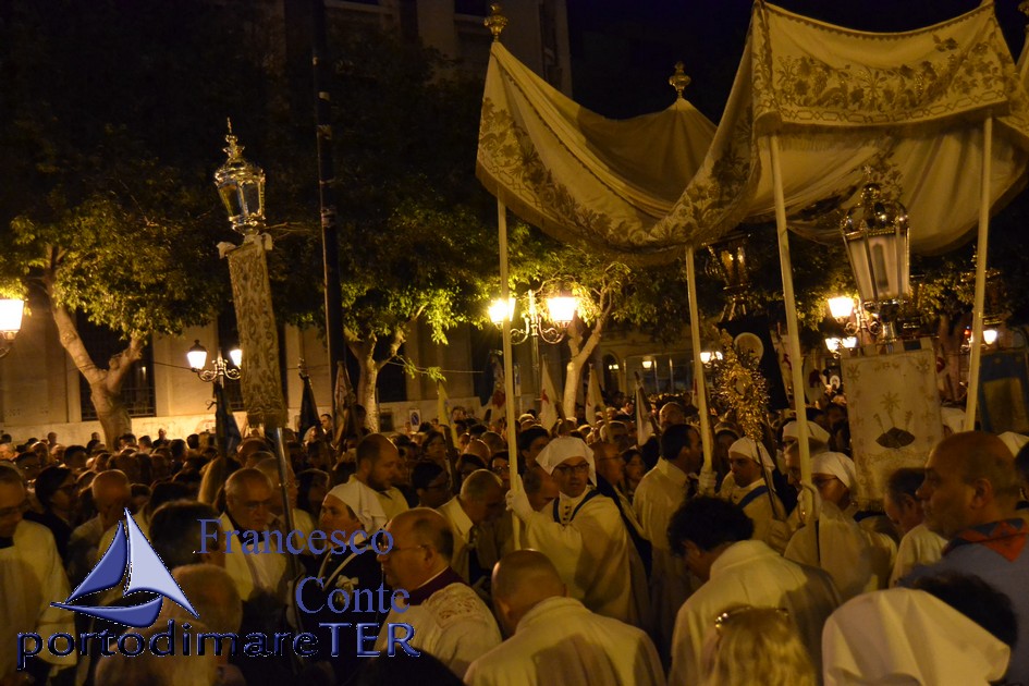 Giunta la processione in piazza della Vittoria, l'ostensorio col SS.mo Sacramento viene solennemente esposto sull'altare allestito su un palco,
